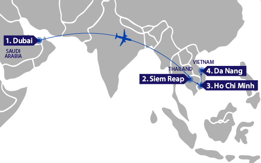 Blending these incredible destinations into a one-of-a-kind holiday itinerary will ensure you not only experience unrivalled bliss and relaxation but also untold adventure, entertainment, wellness and culture. Dubai kicks things off with a bang, and you can soak up the sun in your ultra-luxurious resort, escape to the desert for some thrills or take in the city sights via a leisurely dhow cruise. Siem Reap is a unique destination boasting stunning scenery, modern shopping facilities and magnificent temples and shrines. Finish your multicentre adventure with a two-stop visit to Vietnam. Ho Chi Minh City is bursting with history and heritage that reveals Vietnam’s ancient traditions as well as its vision of the future, while Da Nang will delight and excite you with its city escapades, sun-kissed beaches and action-packed mountain activities.